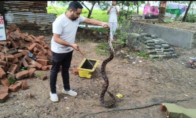 कोरबा छत्तीसगढ/ जिले में लगातार ग्रामीण एवं शहरी क्षेत्रों में सांप निकलने की घटना सामने आ रही हैं, वहीं जहां लोग सुबह होते है रोज के दिनचर्या की काम में लग जाते हैं वहीं जिले के वाइल्डलाइफ रेस्क्यु टीम अपनी जिम्मेदारी निभाने के लिए भी कमर कसते हुए दिन की शुरुवात करते हैं ऐसे ही आज सुबह 5.30 के आस पास बंकी मोगरा एस ई सी ल हॉस्पिटल के समीप लगभग 9 फीट का विशाल काय अजगर देखने की जानकारी जितेंद्र सारथी को मिली जिस पर सारथी ने थोड़ी देर में पहुंचने की बात कहीं और इसकी जानकारी कटघोरा डीएफओ कुमार निशांत को दिया गया फिर उनके निर्देशानुसार कोरबा से बाकी मोगरा क्षेत्र के लिए निकल गए, फिर जब मौके स्थल पर पहुंचे तो पहले लोगों को सुरक्षित दूरी बनाए रखने की बात कहीं वही अजगर घर के बगल रखें ईट के ढेर में घुस गया था आखिरकार लोगों की मदद से पहले कुछ ईटो को हटाया गया फिर जैसे ही अजगर बाहर आया गुस्से से अजगर लगातार सारथी के ऊपर हमला करते दिखा पर सारथी ने प्रोटोकॉल और सुरक्षा का विशेष ध्यान में रखते हुए, पर्याप्त दूरी बना कर बड़ी सावधानी से अगजर को थैले में रेस्क्यु कर के रखा और लोगों को बताया गया कि यह Indian Rock Python (अजगर) हैं जो की जहरीला नहीं होता पर अपने शिकार को कुंडली मार कर दम घोट कर मार सकता हैं इसलिए इनको पकड़ने या छेड़खानी करने की कोशिश न करें तब जाकर सभी ने राहत भरी सांस लिया साथ ही लोगों ने जितेंद्र सारथी का धन्यवाद् ज्ञापित किया फिर अजगर को सुरक्षित जंगल में छोड़ दिया गया।