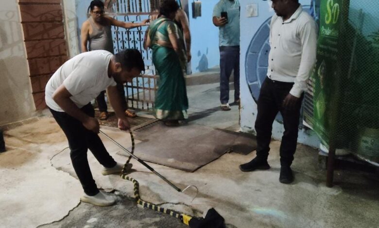 कॉलोनी के बीचों बीच पहुंचा अहिराज सांप, लोगों ने कहा दिखता सुंदर हैं पर देख कर डर भी लगता हैं, जितेंद्र सारथी ने किया रेस्क्यु…