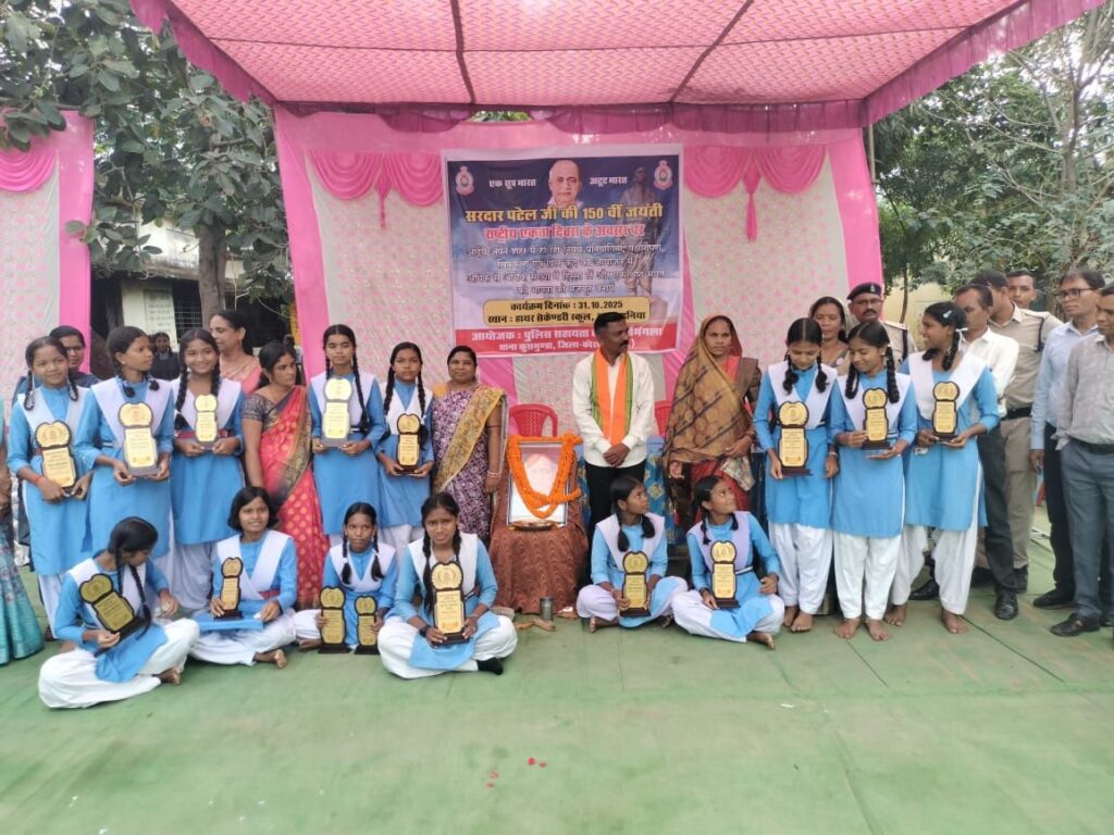 कोरबा छत्तीसगढ // स्वतंत्र भारत के वास्तुकार एवं लौह पुरुष सरदार वल्लभभाई पटेल की 150वीं जयंती राष्ट्रीय एकता दिवस जिले के हायर सेकेंडरी स्कूल पडनिया में भव्यता एवं उत्साहपूर्वक मनाया गया। सर्वमंगला चौकी प्रभारी विभव तिवारी ने बताया कि सरदार पटेल जी के योगदान को याद करने का यह दिन देश की एकता, अखंडता और सुरक्षा के प्रति हमारी प्रतिबद्धता को सुदृढ़ करने का प्रतीक है। स्कूल में इस अवसर पर विभिन्न सांस्कृतिक, खेलकूद , कुर्सी दौड़, चित्रकला, रंगोली, निबंध और वृक्षारोपण जागरूकता कार्यक्रमों का आयोजन कराया गया। साथ ही स्कूली बच्चों को भोजन कराकर प्रतिभागी को पुरस्कार दिया गया।