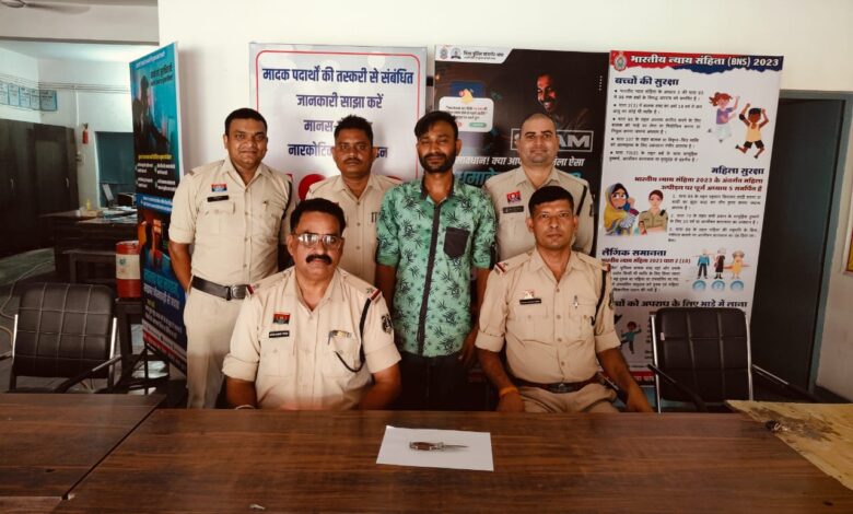 जन्जगीर चांपा छत्तीसगढ( थाना चाम्पा) / मामले का संक्षिप्त विवरण इस प्रकार है कि थाना चांपा से पेट्रोलिंग टीम शहर भ्रमण पेट्रोलिग पर रवाना हुआ था तभी बरपाली चौक चांपा में मुखबिर ने सूचना दिया कि प्रिंस ऑफ प्रिस स्कूल के पास भोजपुर चांपा निवासी अविनाश यादव अपने पास अवैध बटनदार लोहे का चाकू रखा है जिसे रखकर वह मिशन रोड भोजपुर चांपा मे सार्वजनिक स्थान में आने जाने वाले लोगो को डरा धमका रहा है जो किसी के साथ अप्रिय घटना घटित कर सकता है उसके सार्वजनिक स्थान मे बटनदार चाकू दिखाने लहराने में लोगों में भय का महौल बना हुआ है कि सूचना पर से पुलिस अधीक्षक विजय कुमार पाण्डेय (IPS) के निर्देशन एवं अतिरिक्त पुलिस अधीक्षक उमेश कुमार कश्यप, SDOP चांपा श्री यदुमणि सिदार कुशल मार्गदर्शन में तथा थाना प्रभारी जेपी गुप्ता के नेतृत्व में एक टीम मुखबिर के बताये स्थान में घेराबंदी कर आरोपी अविनाश यादव को धारदार बटनदार चाकू के साथ पकड़ा गया जिसके कब्जे से धारदार लोहे के बटन वाले चाकू को बरामद किया गया। आरोपी का कृत्य धारा सदर का पाये जाने से विधिवत गिरफ्तार कर न्यायिक रिमांड पर भेजा गया।