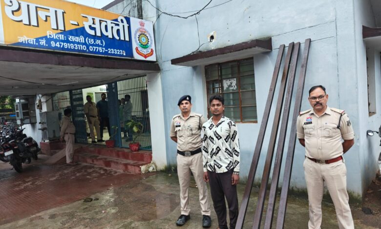 सक्ती छत्तीसगढ // दिनांक 05.08.2025 को प्रार्थी प्रमोद कुमार चैहान निवासी सराईपाली थाना सक्ती का रिपोर्ट दर्ज कराया कि इसके ठेका के निर्माणाधीन मकान के छत के उपर में लोहा के चैनल गाडर किमती 65450 रूपये को कोई अज्ञात चोर चोरी कर ले गया है। कि रिपोर्ट अपराध पंजीबद्ध कर विवेचना दौरान दिनांक 06.08.2025 आरोपीगण 01. दुर्गेश बरेठ पिता सुरज बरेठ उम्र 21 वर्ष सा० वार्ड नंबर 11 गायत्री मंदिर सक्ती 02. शिवा सोनी पिता श्रवण कुमार सोनी उम्र 22 वर्ष सा० राजा पारा सक्ती, 03. पुष्पेन्द्र शर्मा पिता दयाकिशन शर्मा उम्र 25 वर्ष सा० वार्ड नंबर 13 बैगापारा सक्ती से प्रकरण में चोरी गये 05 नग लोहे का चेनल गाडर को बरामद कर आरोपीगण को गिर0 कर न्यायिक पर भेजा गया है।