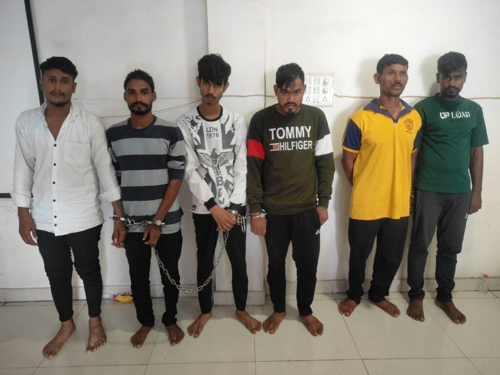 गिरफ्तार 6 आरोपियों की पहचान इन नामों से हुई है -01. सागर नगरहा (देवार) पिता जगमोहन नगरहा उम्र 21 साल निवासी चंगोराभाठा डी.डी.नगर रायपुर।02. भूपेन्द्र साहू पिता लतेलू साहू उम्र 22 साल निवासी ताजनगर, संतोषी नगर थाना टिकरापारा रायपुर।03. शुभांकर पटेल (देवार) पिता स्व. मंगल पटेल उम्र 21 साल निवासी हाउसिंग बोर्ड कॉलोनी कचना थाना खम्हारडीह रायपुर।04. रवि नेताम (देवार) पिता वीरू नेताम उम्र 25 साल निवासी सरकारी स्कूल के पास मठपुरैना थाना पुरानी बस्ती रायपुर।05. करण धु्रव (देवार) पिता हेमु धु्रव उम्र 25 साल निवासी ओम नगर काठाडीह थाना टिकरापारा रायपुर।06. सुरेश सोनझरा पिता स्व. चमन लाल उम्र 46 साल निवासी सोनझरा पारा हरदेव लाल मंदिर के सामने थाना टिकरापारा रायपुर।