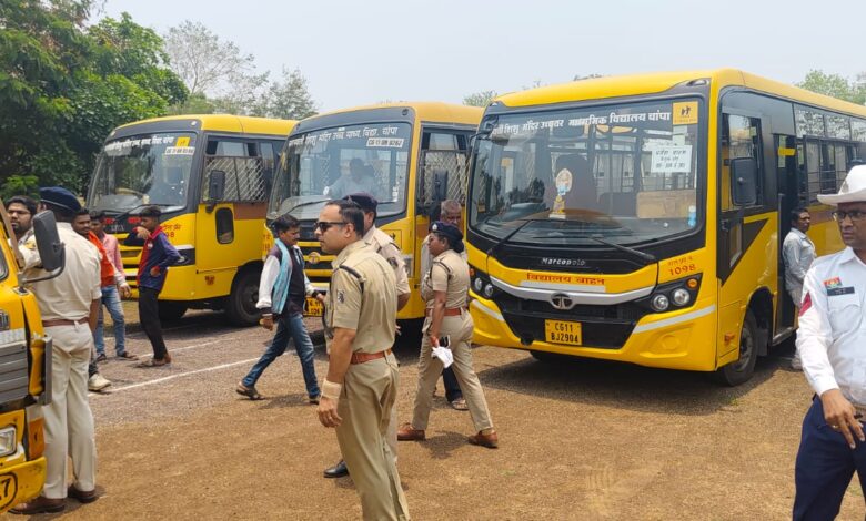 जांजगीर चांपा छत्तीसगढ़ / पुलिस अधीक्षक जांजगीर चांपा विजय कुमार पाण्डेय (IPS) के निर्देशन में दिनांक 07.06.2025 को पुलिस लाइन खोखरा भांठा जांजगीर में अतिरिक्त पुलिस अधीक्षक यातायात उदयन बेहार के नेतृत्व में जिला परिवहन विभाग की टीम के साथ मिलकर शिक्षण सत्र की सुरुवात के पहले जिले में संचालित निजी स्कूलों के वाहनों की जांच हेतु रक्षित केंद्र जांजगीर में शिविर लगाया गया।
