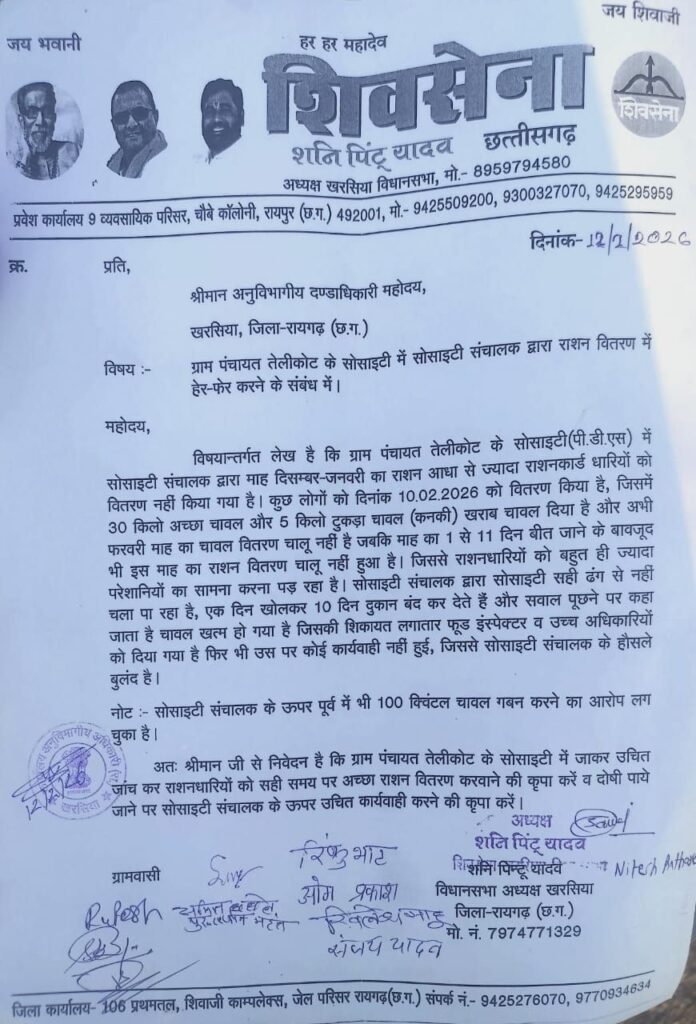 शिवसेना अध्यक्ष ने बताया कि फरवरी माह के 12 दिन बीत जाने के बावजूद राशन वितरण प्रारंभ नहीं किया गया है। ग्राम पंचायत तेलीकोट के अधिकांश परिवार आजीविका के लिए शासकीय राशन पर निर्भर हैं। वितरण में देरी के कारण ग्रामीणों को खाद्यान्न संकट और आर्थिक कठिनाइयों का सामना करना पड़ रहा है।