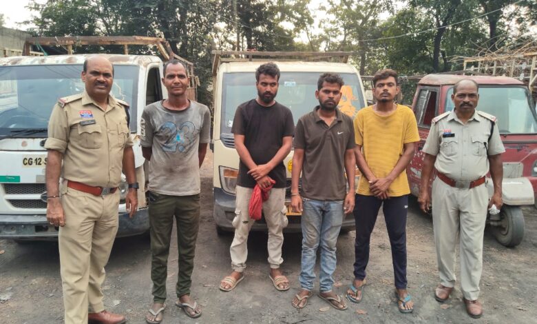 थाना दीपका पुलिस को मुखबिर से सूचना प्राप्त हुई कि मलगांव क्षेत्र में कुछ अज्ञात व्यक्ति चोरी के लोहे के सरिया, रॉड एवं अन्य कबाड़ को पिकअप, ऑटो एवं अन्य वाहनों से परिवहन कर रहे हैं। प्राप्त सूचना पर त्वरित कार्रवाई करते हुए मलगांव में दबिश दी गई, जहाँ पाँच वाहनों से बड़ी मात्रा में अवैध कबाड़ बरामद किया गया। इस संबंध में चार आरोपियों को गिरफ्तार करते हुए थाना दीपका में इस्तगासा क्रमांक 08-11/2025 धारा 106 बीएनएसएस के तहत मामला पंजीबद्ध कर अग्रिम वैधानिक कार्यवाही की जा रही है।