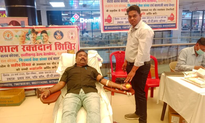 कोरबा। पाम मॉल में रविवार को सुबह 10 बजे से रक्त दान शिविर का आयोजन किया गया है जो शाम 6 बजे तक चलेगा। शिविर का आयोजन रोटरी क्लब, छत्तीसगढ़ हेल्थ वेलफेयर, बजरंग दल, बजरंगी सेना, नि:स्वार्थ सेवा संस्थान एवं बालाजी ब्लड बैंक के सहयोग से शहीद दिवस के उपलक्ष पर वीर स्वतंत्रता सेनानियों को सच्ची श्रद्धांजलि अर्पित करने के लिए किया गया। शिविर में 12 बजे तक 70 यूनिट रक्त इक्ट्ठा किया जा चुका है। आयोजन समिति ने बताया कि लोगों द्वारा रक्त दान करने से दिल की सेहत में सुधार, दिल की बीमारियों और स्ट्रोक के खतरे को कम माना जाता है। खून में आयरन की ज्यादा मात्रा दिल के दौरे के खतरे को बढ़ा सकती है। नियमित रूप से रक्तदान करने से आयरन की अतिरिक्त मात्रा नियंत्रित हो जाती है। जो दिल की सेहत के लिए अच्छी है। उन्होंने बताया कि कई बार मरीजों के शरीर में खून की मात्रा इतनी कम हो जाती है कि उन्हें किसी और व्यक्ति से ब्लड लेने की आवश्यकता पड़ जाती है। ऐसी ही इमरजेंसी स्थिति में खून की आपूर्ति के लिए लोगों को रक्तदान करने के लिए आगे आना चाहिए। इससे जरुरत मंद की मदद हो सकेगी।