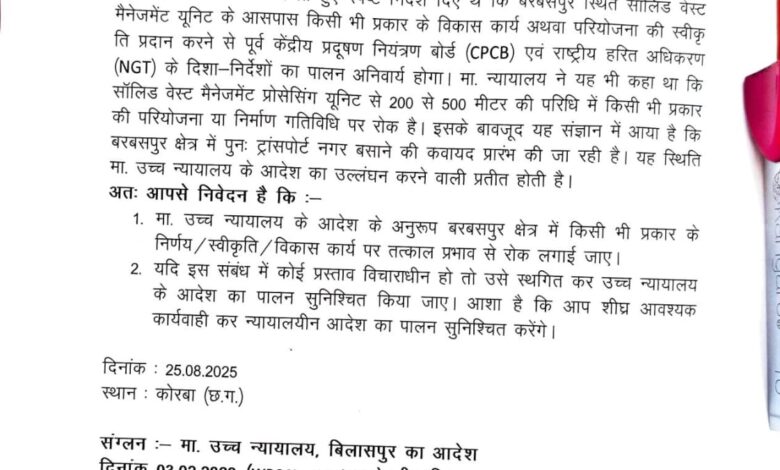 दरअसल 2023 में अब्दुल सुल्तान बनाम राज्य शासन (WPC 615/2023) मामले में छत्तीसगढ़ उच्च न्यायालय, बिलासपुर ने निर्देश दिया कि यदि भविष्य में इस योजना को अमलीजामा पहनाया जाता है तो केंद्रीय प्रदूषण नियंत्रण बोर्ड (CPCB) और राष्ट्रीय हरित अधिकरण (NGT) के दिशा-निर्देशों का पालन अनिवार्य होगा। याचिका में कहा गया था कि उक्त भूमि यह कि सॉलिड वेस्ट मैनेजमेंट यूनिट से 200–500 मीटर दूरी तक किसी भी परियोजना की अनुमति नहीं दी जा सकती। यह भूमि उससे लगी हुई है।