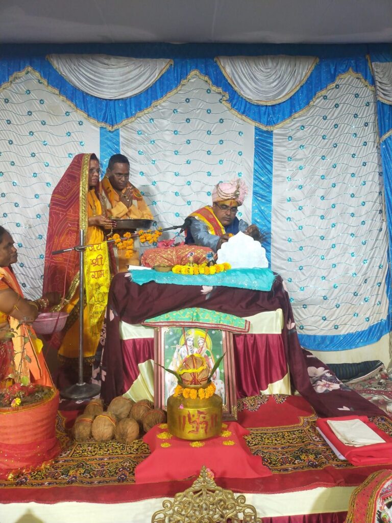 कलासयात्रा कथा पंडाल से गाजे बाजे के साथ शुरू हुई और मानिकपुर की प्रमुख गलियों से होते हुए कल्याण मंडप पहुँची। कल्याण मण्डप में विधिवत पूजा अर्चना की गई।
