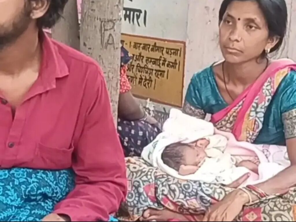 नवजात शिशु को लेकर बाहर बैठे परिजन
