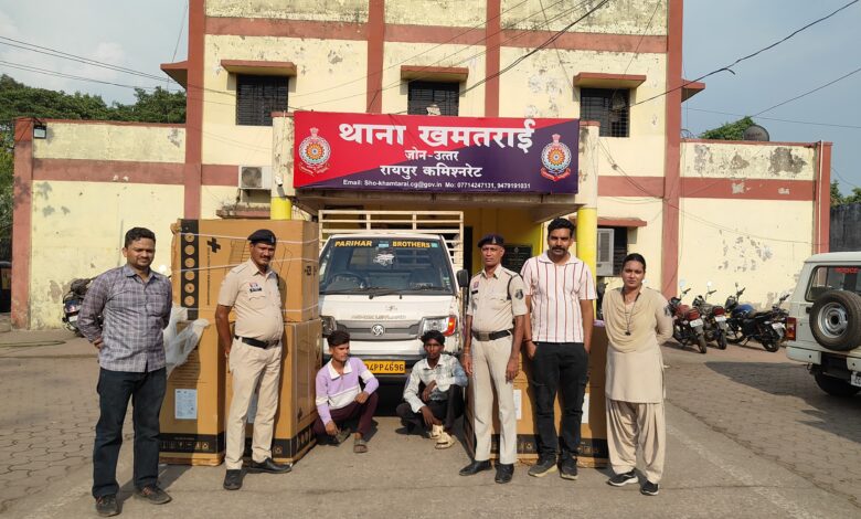सूचना मिलते ही अतिरिक्त पुलिस उपायुक्त आकाश मरकाम और सहायक पुलिस आयुक्त उरला पूर्णिमा लामा ने टीम को तत्काल कार्रवाई के निर्देश दिए। थाना खमतराई पुलिस की टीम ने मौके पर पहुंचकर मुखबिर द्वारा बताए गए हुलिए और वाहन के आधार पर संदिग्धों की पहचान कर उन्हें घेराबंदी कर पकड़ा। पूछताछ में आरोपियों ने अपना नाम इंद्रजीत साहू और सल्लू साहू उर्फ राहुल बताया। पुलिस द्वारा सख्ती से पूछताछ करने पर दोनों ने चोरी की वारदात को अंजाम देना स्वीकार किया। इसके बाद पुलिस ने उनके कब्जे से 05 वाशिंग मशीन और घटना में इस्तेमाल किया गया वाहन क्रमांक CG04PP4696 जब्त कर लिया।