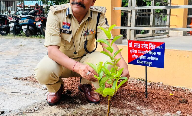 रायपुर छत्तीसगढ़ / विश्व पर्यावरण दिवस के अवसर पर छत्तीसगढ़ की राजधानी रायपुर में एक सराहनीय पहल के तहत पुलिस विभाग द्वारा पर्यावरण संरक्षण की दिशा में कदम उठाया गया। दिनांक 5 जून 2025 को पुलिस उप महानिरीक्षक एवं वरिष्ठ पुलिस अधीक्षक डॉ. लाल उमेद सिंह के नेतृत्व में एण्टी क्राइम एंड साइबर यूनिट, गंज परिसर में वृक्षारोपण कार्यक्रम का आयोजन किया गया। इस कार्यक्रम में पुलिस विभाग के वरिष्ठ अधिकारियों समेत कई कर्मियों ने सहभागिता कर पर्यावरण के प्रति अपनी प्रतिबद्धता प्रकट की।