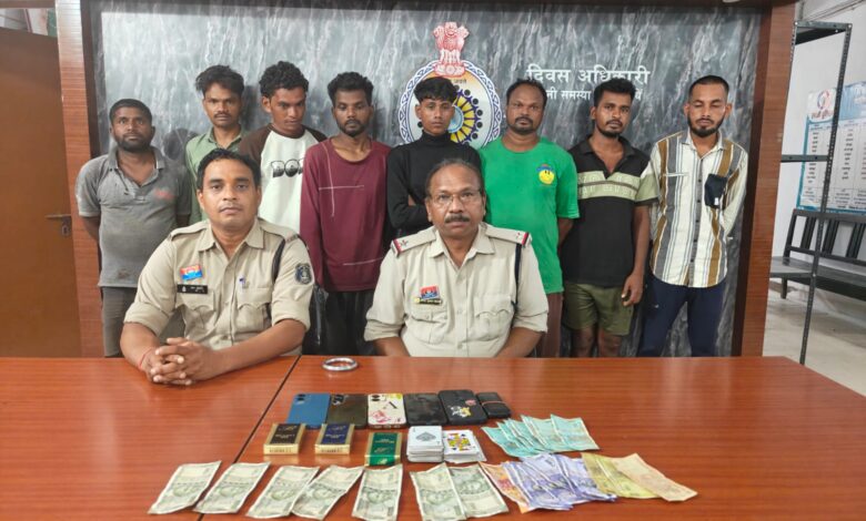 सक्ती छत्तीसगढ़ // थाना सक्ती पुलिस ने संगठित अपराध की रोकथाम के लिए बड़ी कार्रवाई करते हुए सार्वजनिक स्थान पर जुआ खेल रहे आठ आरोपियों को गिरफ्तार किया है।