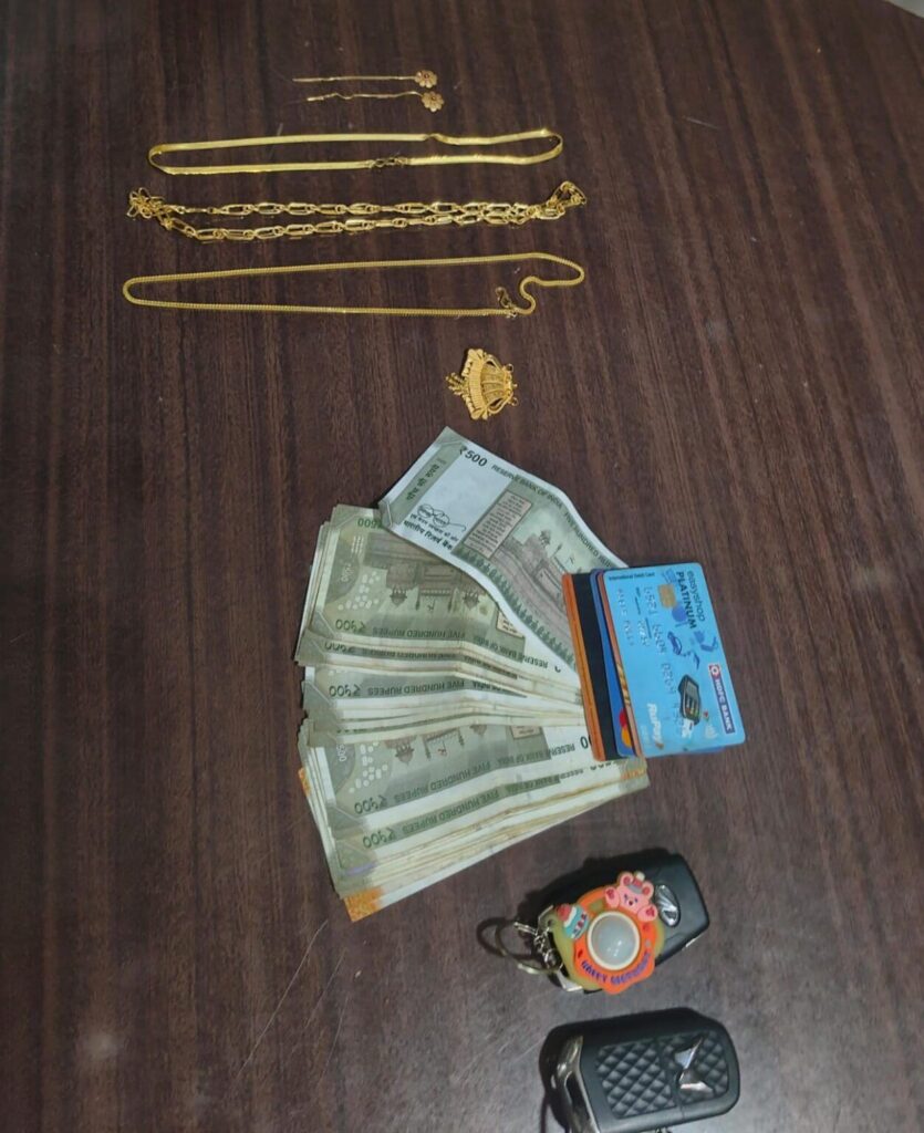 1. चोरी गए दो सोने की चेन एवं एक सोने का लॉकेट सहित कुल लगभग 4,50,000/- (साढ़े चार लाख रुपये) मूल्य की ज्वेलरी की बरामदगी की गई।