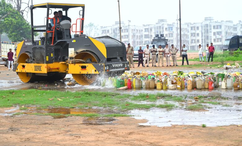 10 हजार लीटर अवैध शराब पर पुलिस का चला बुलडोजर…