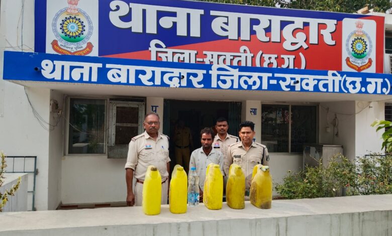 सक्ती छत्तीसगढ़(थाना बाराद्वार)– मामले का विवरण इस प्रकार है कि पुलिस अधीक्षक सक्ती अंकिता शर्मा महोदया द्वारा क्षेत्र मे अवैध जुआ, गांजा व शराब बिक्री एवं परिवहन करने वाले आपराधियों पर अकुंश लगाने हेतु अधिक अधिक कार्यवाही करने की निर्देश पर अतिरिक्त पुलिस अधीक्षक हरीश यादव जी, अनुविभागीय अधिकारी (पुलिस) मनीष कुंवर सक्ती के मार्गदशन पर थाना प्रभारी निरीक्षक लखन पटेल थाना बाराद्वार द्वारा दिनांक 03.05.25 को मुखबीर की सुचना पर ग्राम पलाड़ीकलाॅ एवं मुक्ताराजा में अलग अलग टीम बनाकर रेड कार्यवाही कर आरोपीगण 1. रामचरणकुर्रे पिता सजन राम कुर्रे उम्र 47 साल निवासी वार्ड क्रमांक 11 बाराद्वार थाना बाराद्वार जिला सक्ती(छग) 2. रामखिलावन बरेठ पिता समे लाल बरेठ उम्र 31 साल निवासी पलाड़ीकलाॅ थाना बाराद्वार जिला सकती (छ0ग0) कब्जे से कुल 28 लीटर कच्ची महुआ शराब भरी हुई कीमति 3800/- रूपये को जप्त किया गया जिसे आबकारी एक्ट के प्रावधानो के तहत विधिवत कार्यवाही कर आबकारी अधिनियम का सबुत पाये जाने से आरोेपीयान को गिरफ्तार कर रिमांड पर मान.न्यायालय पेश किया गया।